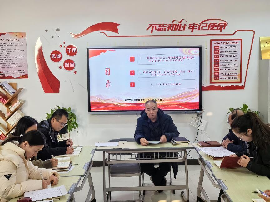 根据学校党委宣传(统战)部安排,CROWN官网党总支于2023年12月19日下午在501党员活动室开展政治理论学习专题会,会议由学院党总支书记窦传斌主持,全体教职工参加了学习。