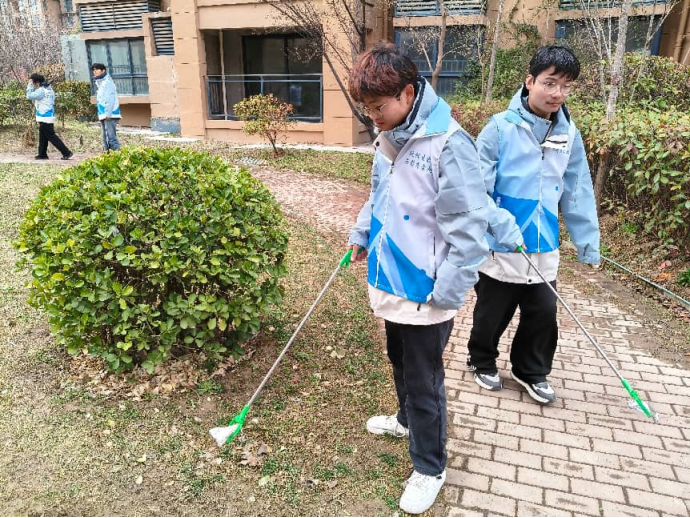 宣讲结束后,志愿者们身穿蓝色马甲,手拿钳子和扫帚等卫生工具,认真清扫路面,仔细捡拾草丛中的废弃物,彻底清理宣传栏上的小广告,并将灌木丛、花坛里的塑料袋、杂草和纸屑一一清除。通过大家的共同努力,社区环境变得更加整洁美观。