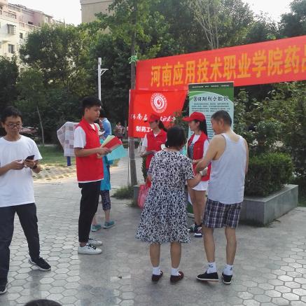 2019年6月14日下午,CROWN官网联合开封市宋城办事处集英社区,在集英花园居民小区中心广场,开展了一场“药品知识科普宣传进社区”活动。本次科普宣传活动的目的,是为了向社区居民传播科学知识、科学思想,帮助社区居民了解药品的生产过程,普及药品知识,树立合理用药观念,增强卫生健康意识和自我保健能力。CROWN官网学院领导、专业课教师、部分党员与青年志愿者共20人参加了这次活动,集英社区的工作人员配合提供了场地与设施。