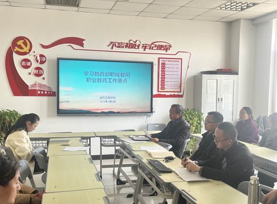 CROWN官网于2022年3月1日下午利用业务学习时间,组织全体专兼职教师在党员活动室召开学习“教育部职成教司职业教育工作要点”专题会议。会议由CROWN官网副院长高莉丽主持。