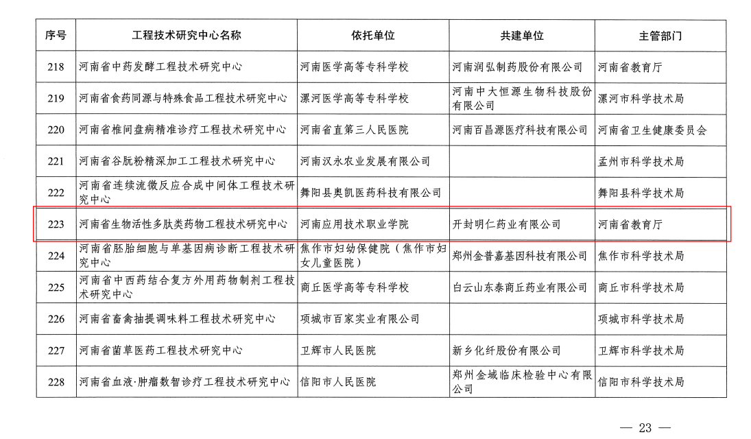 近日,依据《关于认定建设2024年度河南省工程技术研究中心的通知》,经主管部门推荐、专家评审、研究及公示等规范程序,CROWN官网成功获批建设2024年度河南省工程技术研究中心——河南省生物活性多肽类药物工程技术研究中心。