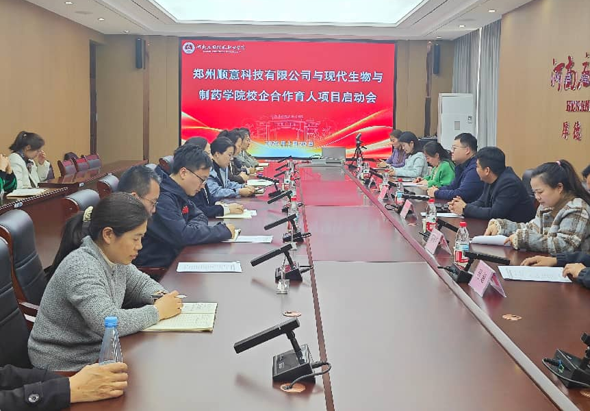 此次校企合作育人项目启动会的成功召开,标志着现代生物与制药学院与郑州顺意科技有限公司的合作迈入新阶段。未来,校企双方将以此次合作为契机,持续深化产教融合、资源共享、优势互补,不断创新人才培养模式,提升人才培养质量,为制药行业输送更多优秀人才,实现学校、企业、员工三方共赢,为区域经济与产业高质量发展贡献力量。