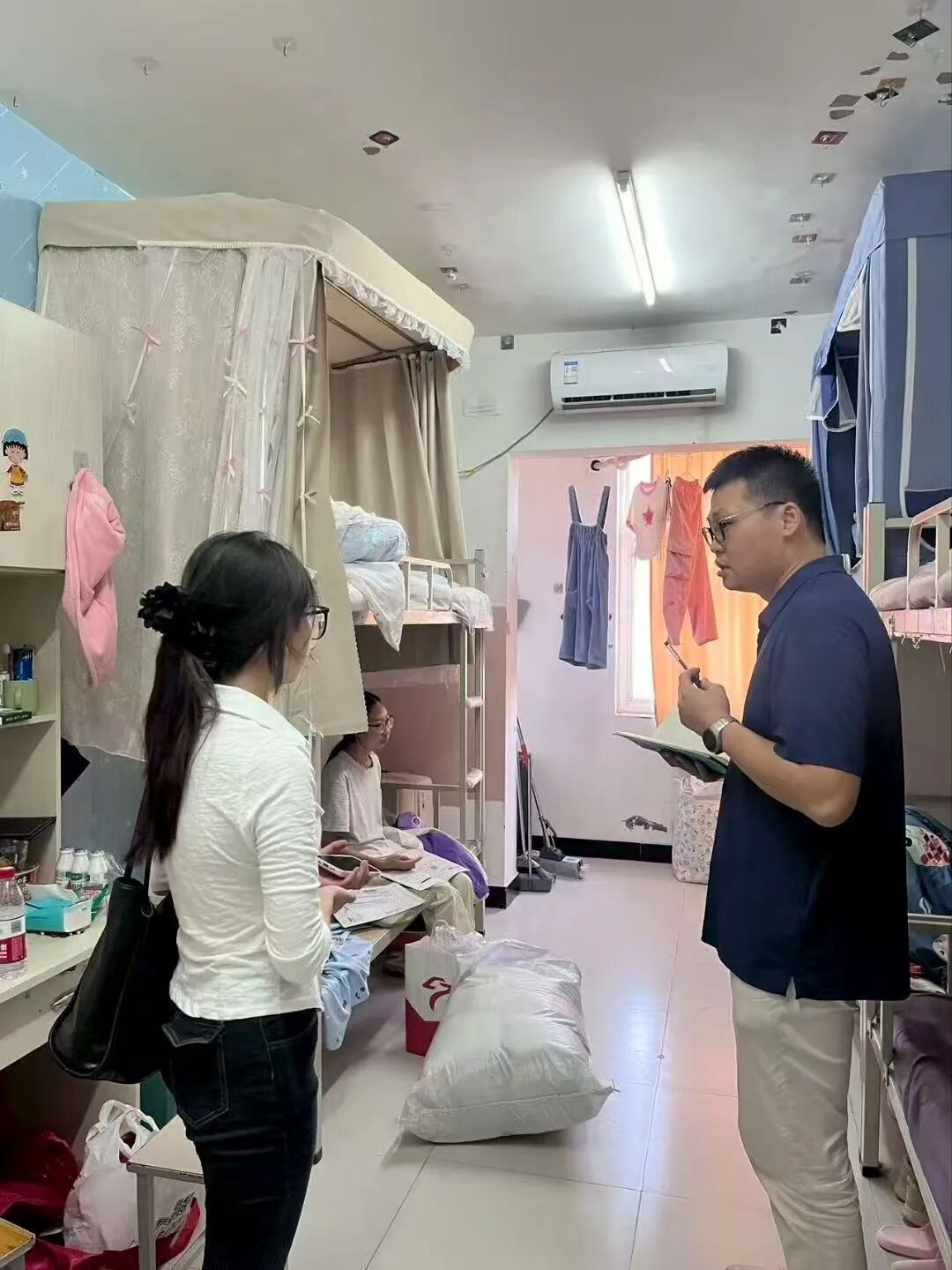 班会结束后,辅导员们深入新生宿舍,开展“暖心查寝”活动。每到一间宿舍,辅导员都与员工亲切交谈,仔细查看宿舍卫生状况,叮嘱员工注意宿舍用电规范,禁止使用违规电器。同时,辅导员耐心倾听新生在生活适应、宿舍关系等方面遇到的问题,现场协调解决宿舍设施故障、生活用品采购等实际需求,并鼓励新生互帮互助、团结友爱,共同营造安全、和谐、温馨的“第二个家”。一句句贴心的叮嘱、一次次耐心的解答,让初入校园的新生感受到了学院的关怀与温暖,有效缓解了他们的思乡之情与入学焦虑。