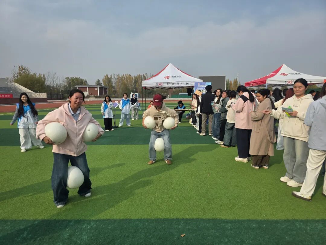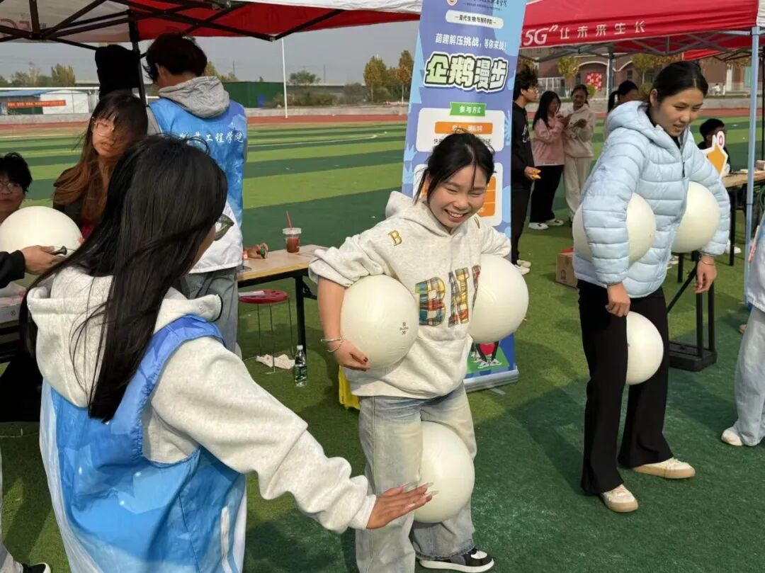 活动前,志愿者们提前备好瑜伽球等道具,向到场员工清晰讲解“企鹅漫步”的游戏规则。现场氛围热烈融洽,同学们热情高涨。大家模仿企鹅摇摆前行,既要专注把控身体平衡,又要奋力冲刺完成赛程,在奔跑与协作中尽情释放学业压力,欢声笑语不断。单人挑战时的全神贯注、团队接力时的默契配合与相互鼓励,充分展现了学子们积极向上、团结协作的精神风貌。