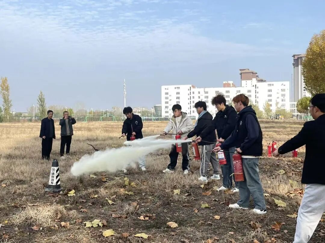 在掌握灭火器“提、拔、握、压”四步使用法及“上风向操作”“保持安全距离”等关键要点后,师生迅速进入实战状态,分组进行了灭火器实操练习。大家轮番上阵,严格按照操作规范,成功完成模拟火点的扑救任务。