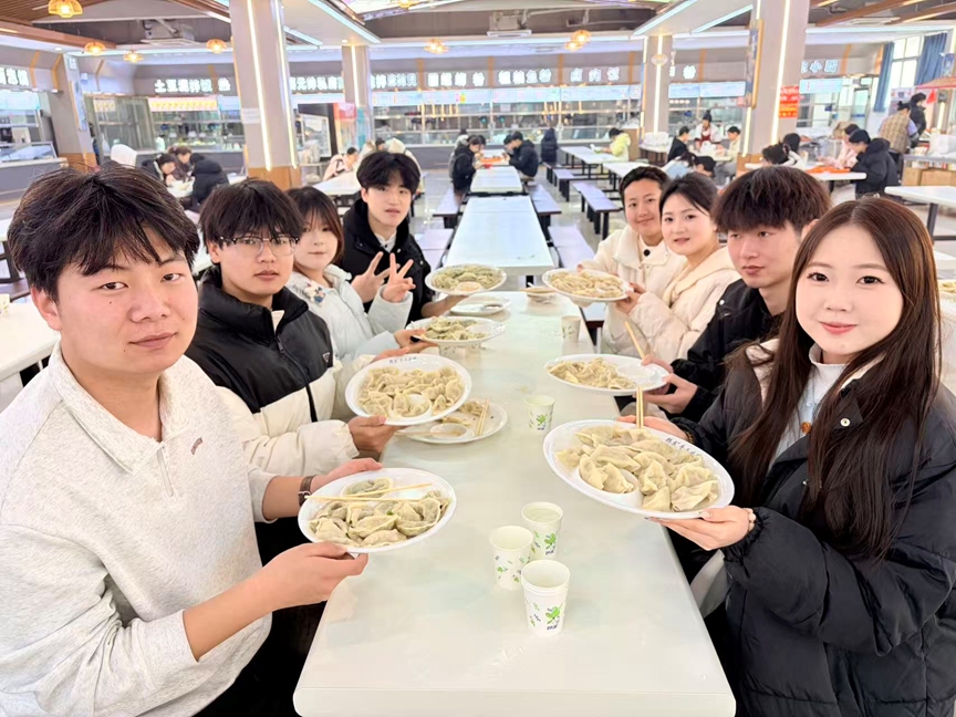 活动现场,面团、馅料一应俱全,师生分工协作,和面、擀皮、包馅、下锅,配合默契。尽管不少同学是第一次包饺子,但在老师和同学的指导下,逐渐掌握技巧,形态各异的饺子陆续“诞生”,现场欢声笑语不断。煮好的饺子热气腾腾,大家围坐品尝,暖意融融,盘中的饺子承载着浓浓的师生情与同窗谊。