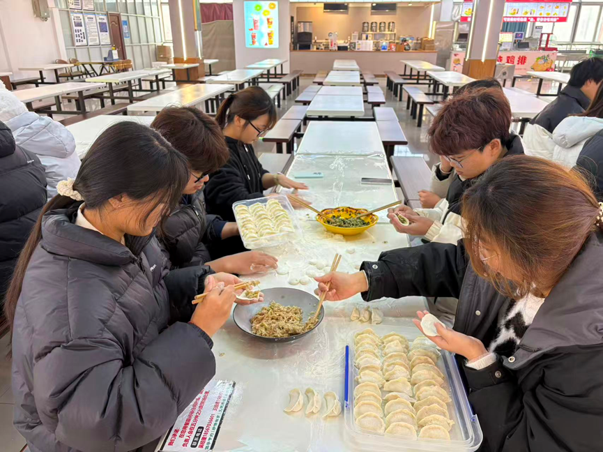 冬至逢寒心有安暖,岁月清宁万事顺安。为弘扬传统节气文化,促进师生情感交融,12月20日,现代生物与制药学院于员工食堂开展“岁寒凝雅韵,饺香润初心”冬至包饺子主题活动。学院党总支书记梁艳、党总支副书记王俊永、团总支书记曹璐与24级、25级员工代表携手相伴,在欢声笑语中共赴这场暖冬佳节之约。