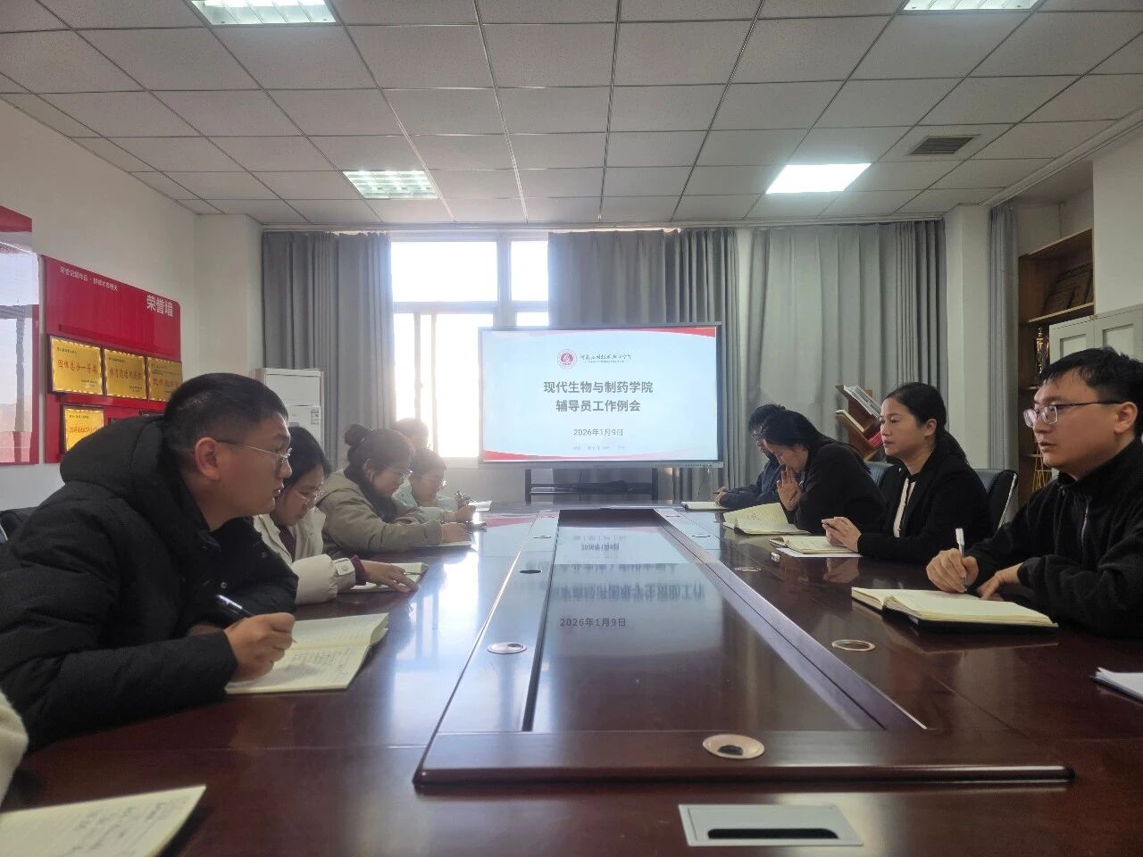 为扎实推进员工管理工作,压实辅导员育人职责,1月9日,现代生物与制药学院在办公楼301会议室召开辅导员工作例会。党总支书记梁艳出席会议,全体专兼职辅导员参会,会议由党总支副书记王俊永主持。