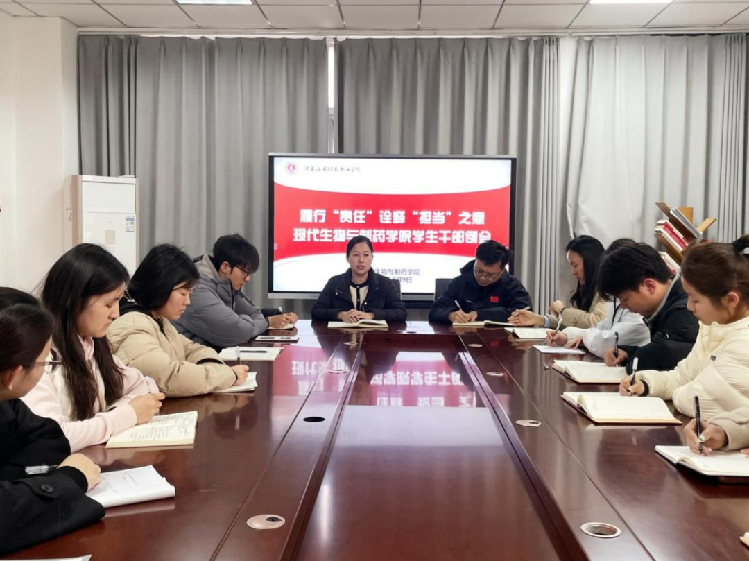 3月9日,现代生物与制药学院在办公楼301室召开员工会干部例会。党总支书记梁艳、党总支副书记王俊永、团总支书记曹璐及学院员工会各部门负责人参加会议。