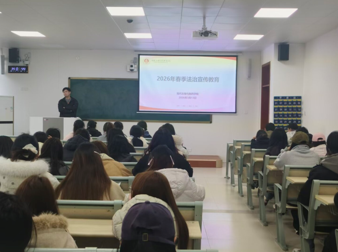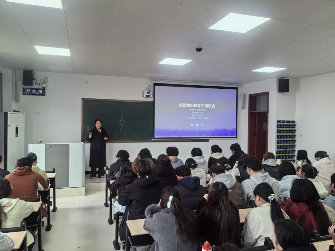 为进一步强化员工法治意识,规范日常行为,营造安全、文明、有序的校园育人环境,现代生物与制药学院组织各班召开校规校纪教育主题班会。