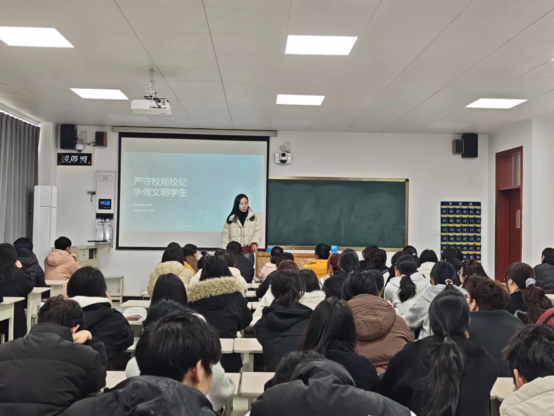 各班辅导员结合近年校园典型违纪案例,以案释法、以例明纪,重点强调了考试纪律、宿舍安全、请假销假、实习实训等管理事项,详细讲解违纪行为对应的处分流程与不良影响,提醒员工自觉抵制违规行为,珍惜在校学习生活时光。