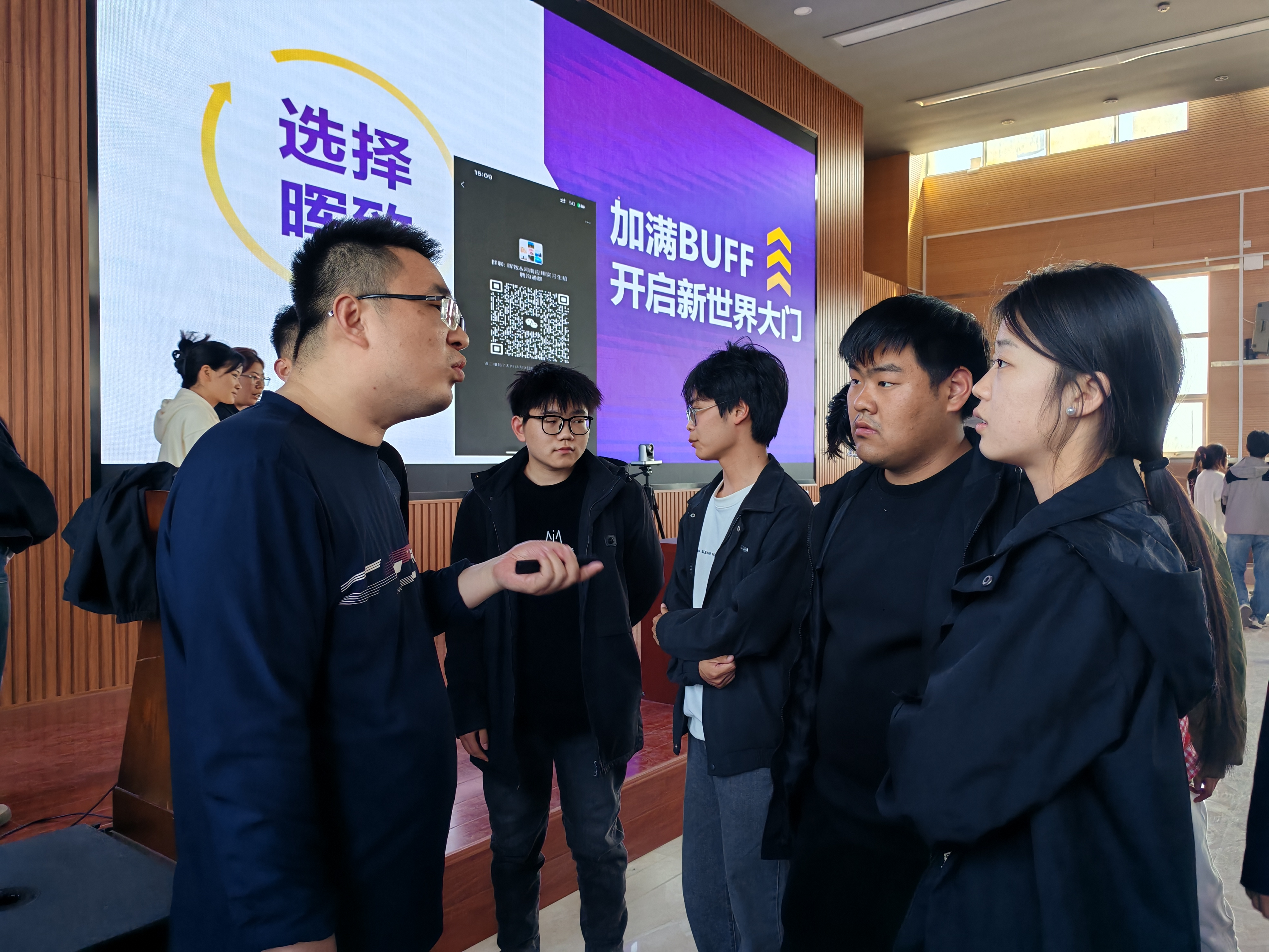 接着,企业代表带来行业前沿资讯,分享企业发展历程,以及核心产品领域;讲述职业发展路径,涵盖从基层岗位晋升到管理或技术专家的成长路线等内容。为同学们搭建了解行业与企业的窗口,助力其明晰职业方向。