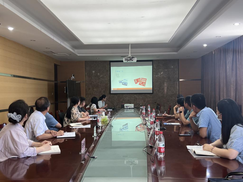 金不换公司业务部主管李培培对金不换公司的企业历史、组织架构、生产经营范围、技术研发能力做讲解说明。
