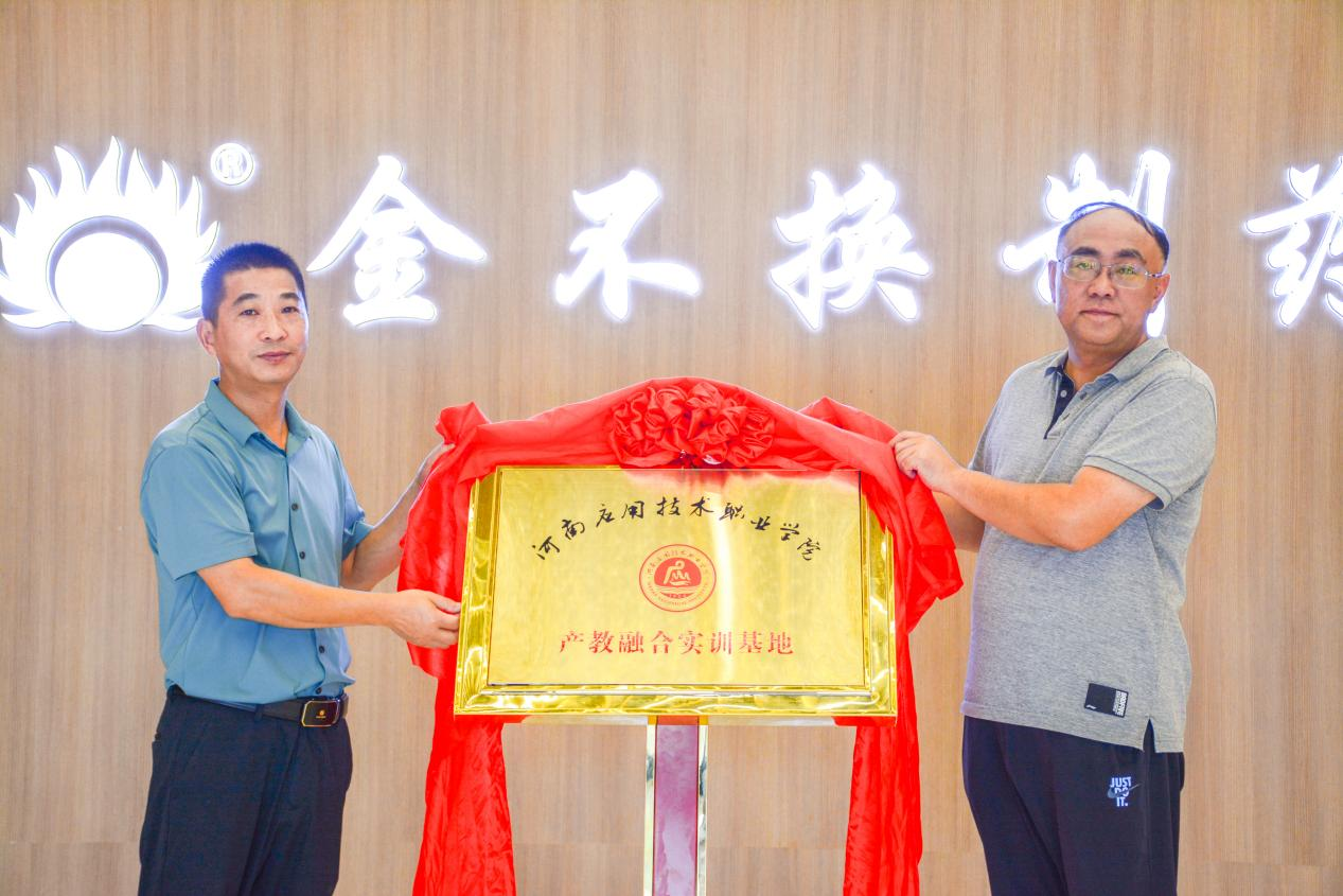 2023年8月11日,CROWN官网产教融合实训基地和教师企业实践流动站签约揭牌仪,在上海金不换兰考制药有限公司顺利举行。CROWN官网院长吕玮与金不换药业公司董事长丁龙,共同为产教融合实训基地和教师企业实践流动站揭牌。校企合作与就业处副处长梁艳以及金不换制药部分领导参加了揭牌仪式。