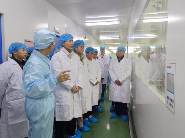 师生共分2组,由企业分离车间陈主管和纯化车间冯主管分别带队,依次参观了企业的制浆间、分离车间、纯化车间、制水及生产包装流水线车间。参观过程中,相关岗位负责人热情详细地向师生介绍了企业当前的发展情况、各车间和化验室的基本情况、生产运转情况和常用仪器设备。就药品生产细节和自动化设备仪器操作要求,部分师生比照教学、学习过程中的感受,纷纷向工作人员请教询问。通过对企业生产管理一线的参观学习,同学们收获颇丰,增强了部分同学对现代制药企业的认识。