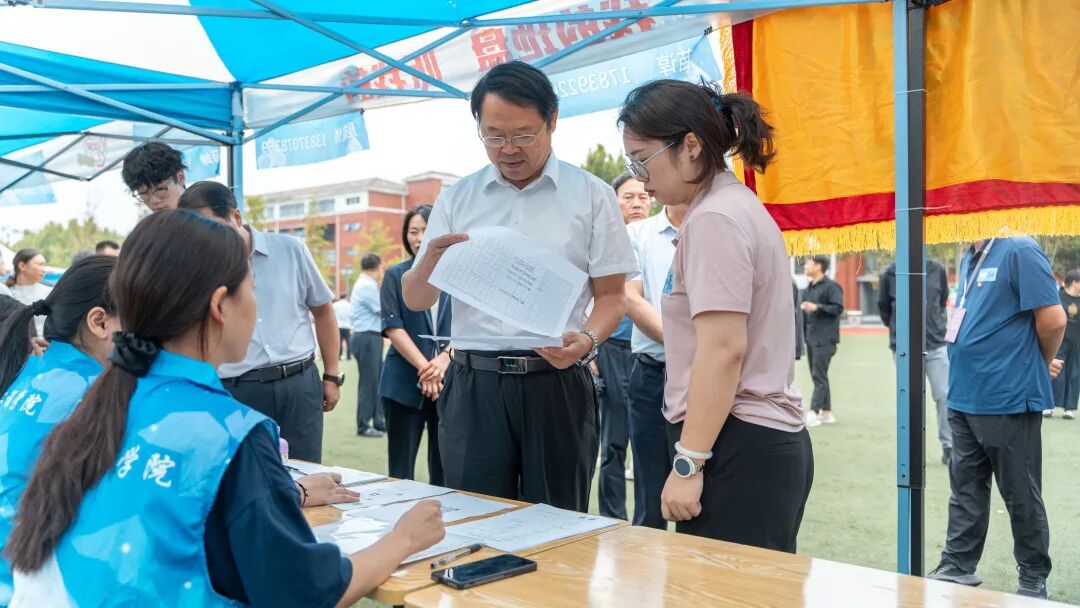 迎新期间,校领导一行深入迎新现场,详细了解新生报到流程、志愿者服务及物资保障情况,仔细询问各项工作进展。校领导慰问一线工作人员,对学院迎新工作的组织与服务表示肯定,勉励大家以热情服务展现学院风貌。