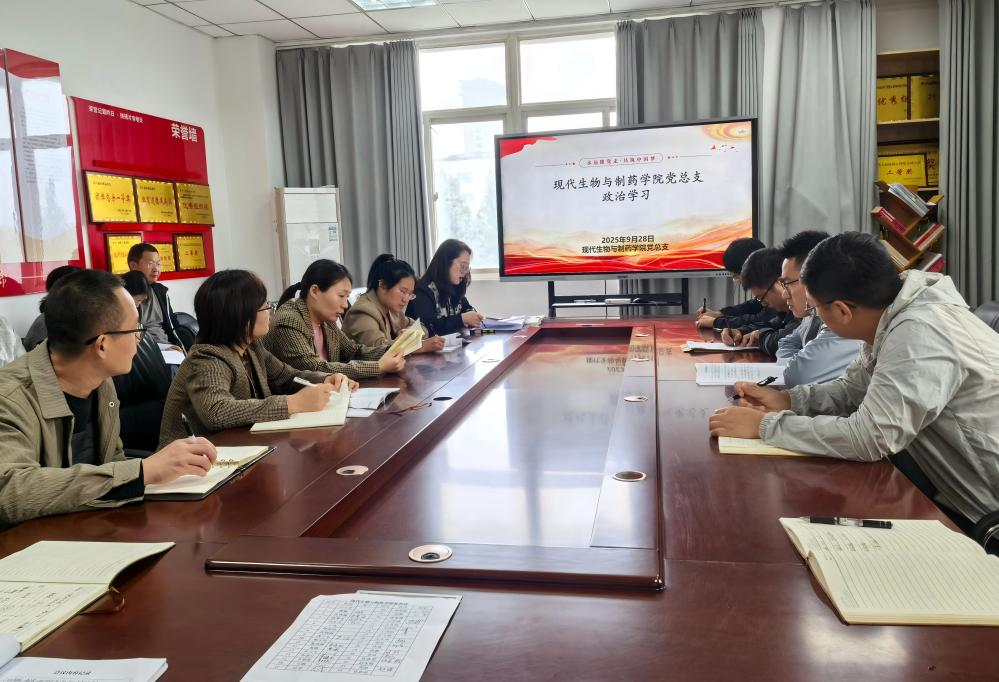 根据学校党委宣传(统战)部安排,现代生物与制药学院党总支于2025年9月28日下午在301党员活动室开展政治理论学习,本次学习由学院党总支副书记白小茗主持,全体教职工参加。