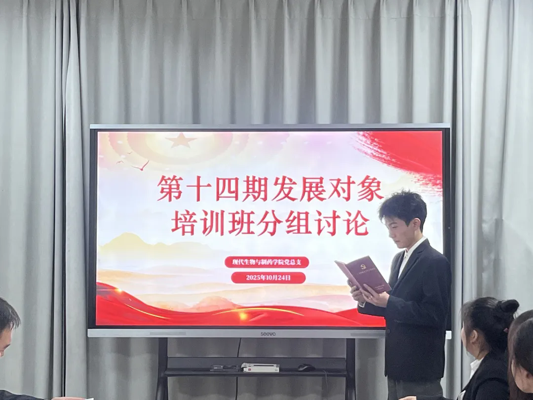 为进一步提升党员发展对象的政治理论水平和实践能力,明确入党动机,增强责任担当意识,2025年10月24日,现代生物与制药学院党总支组织第十四期发展对象开展分组讨论。