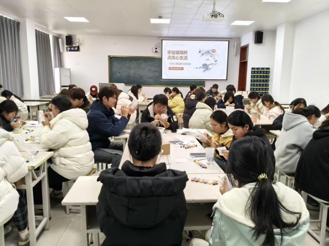 为帮助员工释放学业与成长中的压力,搭建互动交流的温暖平台,12月2日,现代生物与制药学院在开封校区南院206教室顺利开展 “手绘玻璃杯,点亮心生活”12月心理健康主题活动。学院员工积极参与,在艺术创作中治愈心灵、积蓄成长力量。