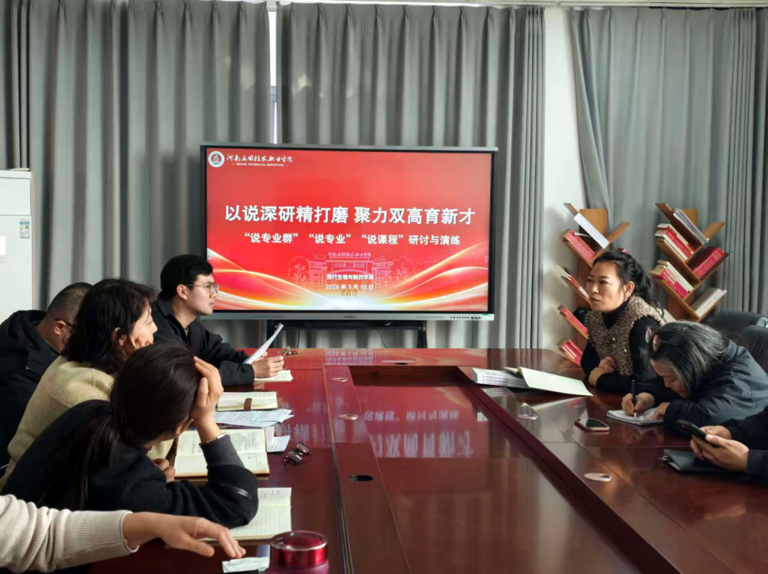 3月10日下午 ,现代生物与制药学院在 301 会议室召开“说专业群”、“说专业”、“说课程”研讨与演练会,会议由副院长高莉丽主持,学院全体专兼职教师参会。本次会议紧扣学校“深化专业内涵建设,赋能双高发展新篇”主题,围绕专业群构建逻辑、专业岗位对接、课程教学实施等核心内容开展深度研讨与模拟演练,旨在以“三说”为抓手,推动专业内涵建设,优化人才培养体系,助力学校“双高计划”和教学评估工作。