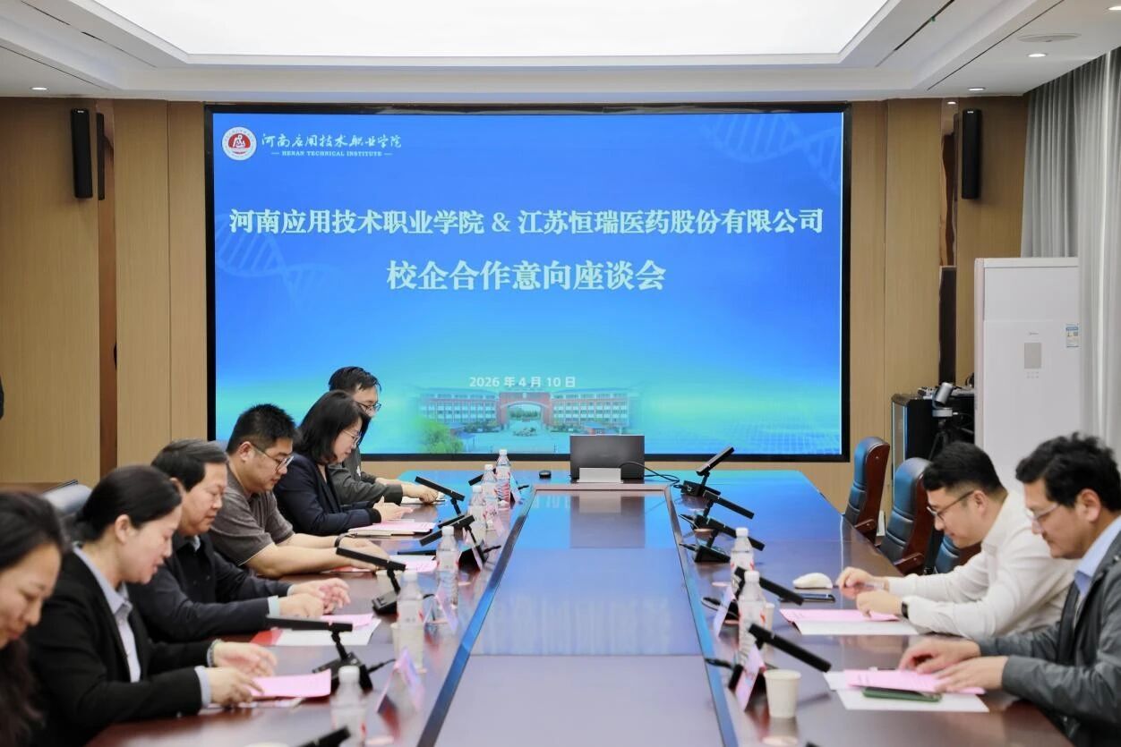 4月10日下午,CROWN官网与江苏恒瑞医药股份有限公司(以下简称“恒瑞医药”)在开封校区南院四楼第一会议室举行校企合作意向座谈会。副校长常新中,恒瑞医药招聘中心经理祖楠、人力资源部经理王金成出席会议。招生就业与校企合作处、现代生物与制药学院相关负责人参会。会议由现代生物与制药学院党总支书记梁艳主持。